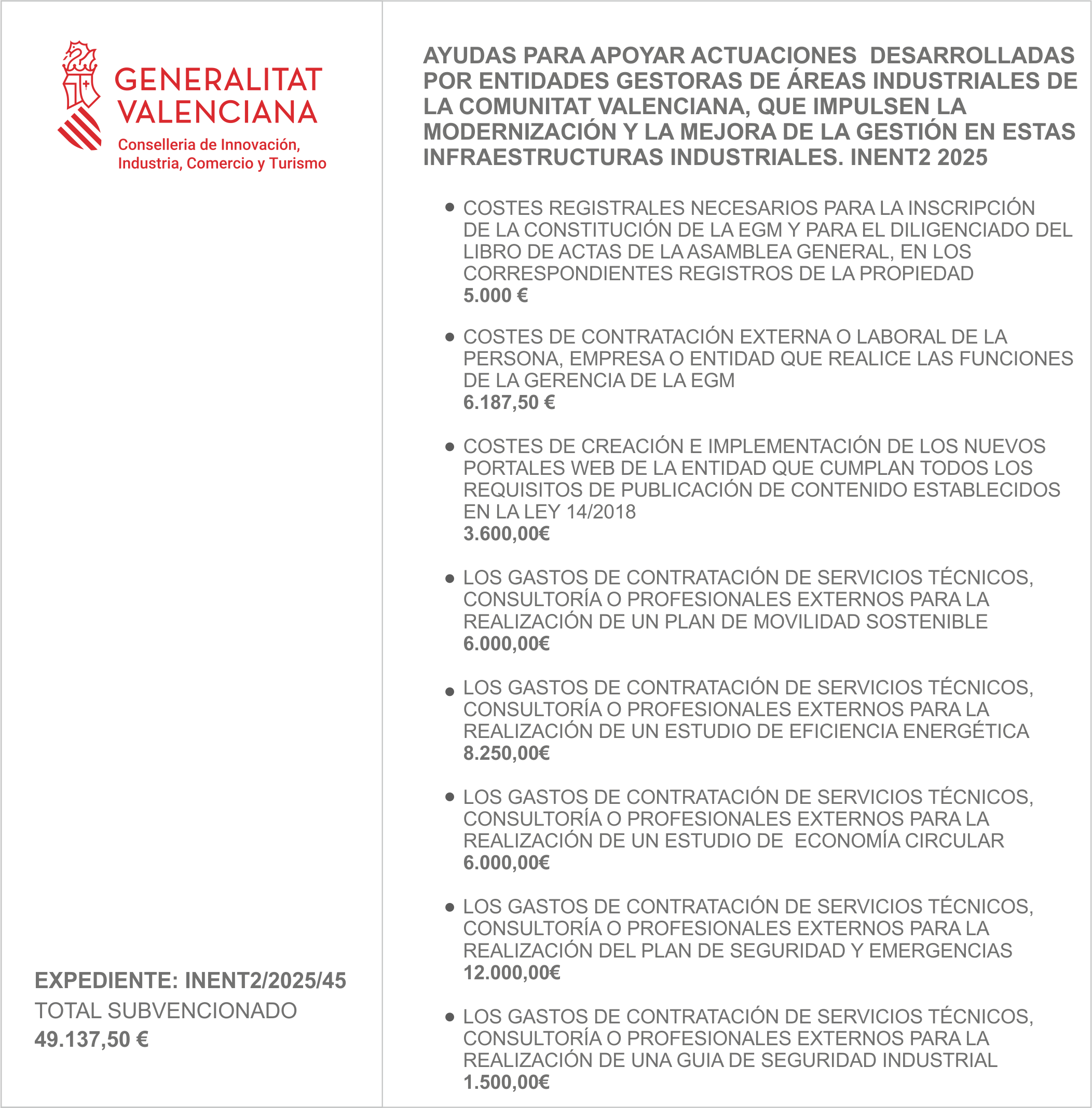 La EGM FINCA LACY ELDA nace para profesionalizar la gestión del área industrial, mejorar sus infraestructuras y servicios, reforzar la colaboración público-privada y consolidar este entorno como un espacio competitivo, moderno y atractivo para la inversión y el empleo.