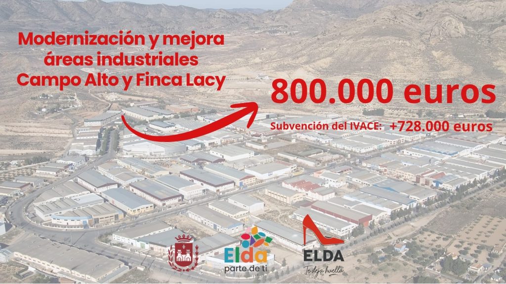El alcalde de Elda, Rubén Alfaro, acompañado de Raquel Fernández, directora del área de Espacio Público e Inversiones y Marc Pastor, ingeniero municipal, ha anunciado que el Ayuntamiento de Elda ha logrado obtener una subvención del IVACE (Instituto Valenciano de Competitividad Empresarial) por valor de 728.812,51 euros, a la que añadirá 71.187,49 euros de recursos propios, para modernizar y mejorar los polígonos industriales de Campo Alto y Finca Lacy, siguiendo la senda marcada en años anteriores para continuar poniendo en valor estos enclaves empresariales tan importantes para la ciudad. De ese modo, la inversión en ambos espacios industriales alcanzará los 800.000 euros.
